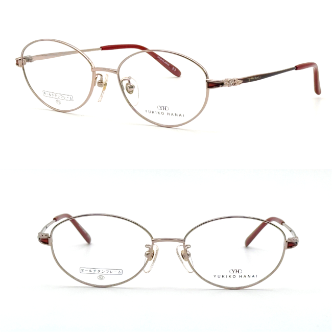 レンズ下部を絞り、柔らかな中にもスッキリした印象を演出する玉型。テンプルには〝フローラル・レリーフ″を施し、細身で繊細な大人エレガンスを表現します。